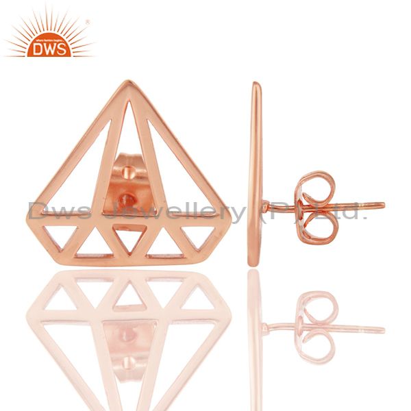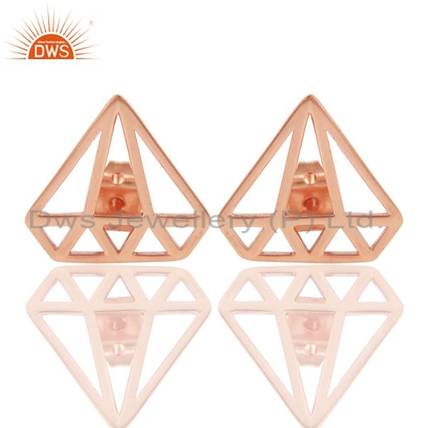 14K Rose Gold Plated 925 Sterling Silver Handmade Art Deco Studs Earrings