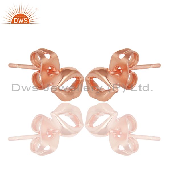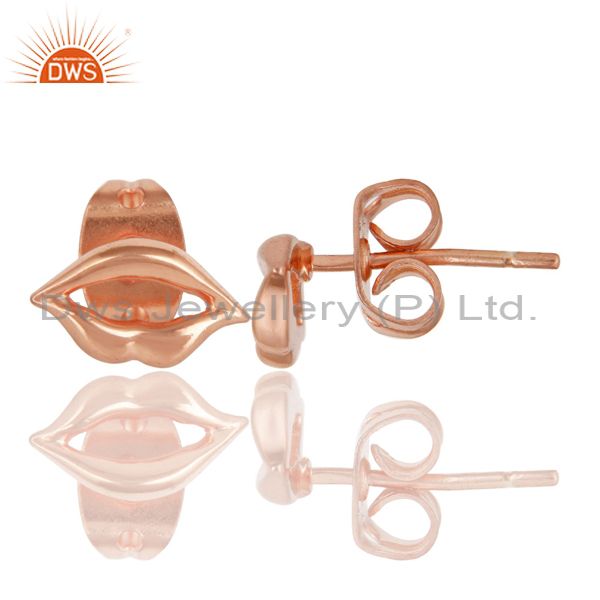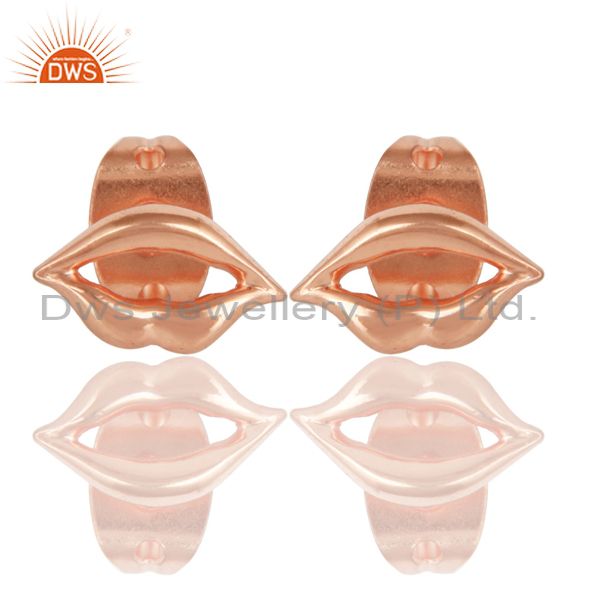 14K Rose Gold Plated 925 Sterling Silver Handmade Art Lips Design Studs Earrings