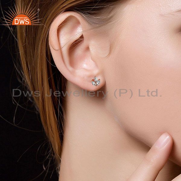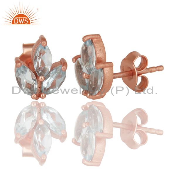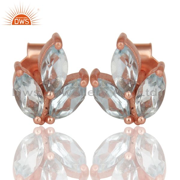 14K Rose Gold Plated 925 Sterling Silver Prong Set Blue Topaz Studs Earrings