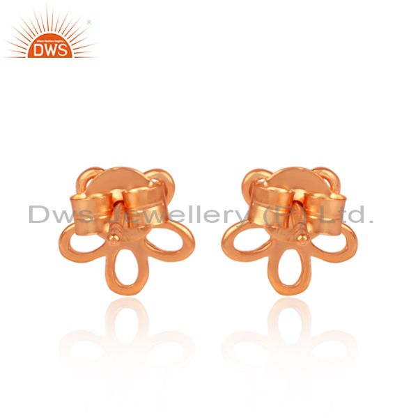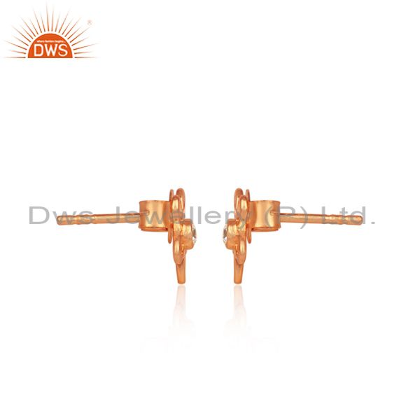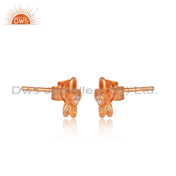 14K Rose Gold Plated Sterling Silver Flower Design White Zirconia Studs Earrings