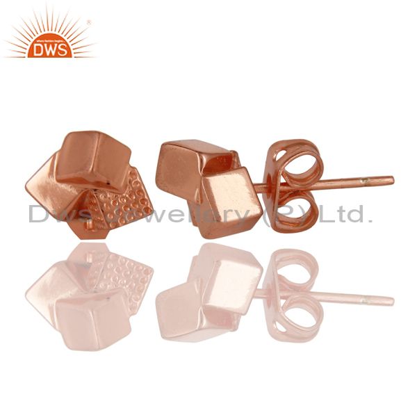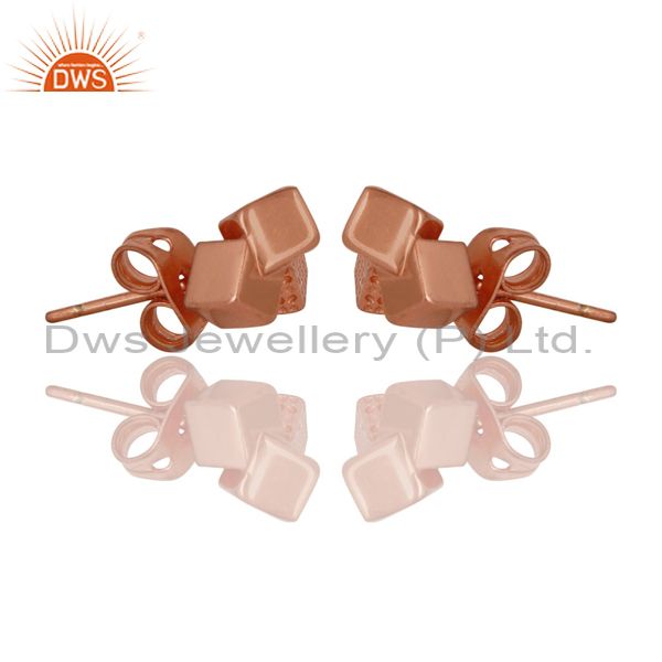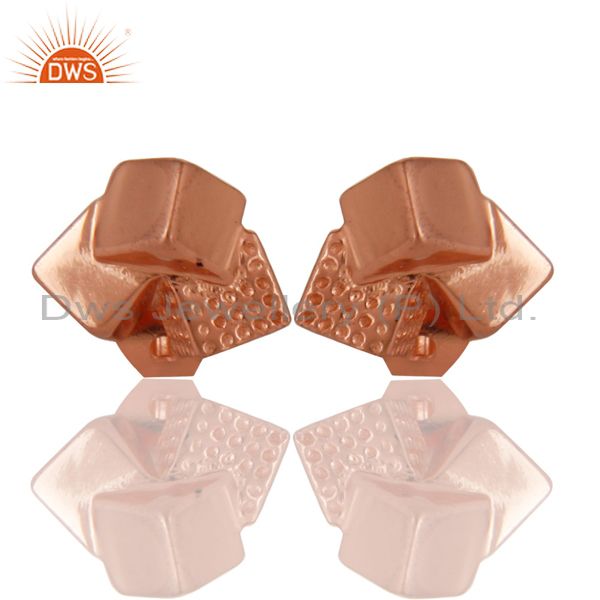 14K Rose Gold Plated Sterling Silver Handmade Art Little Studs Fashion Earrings