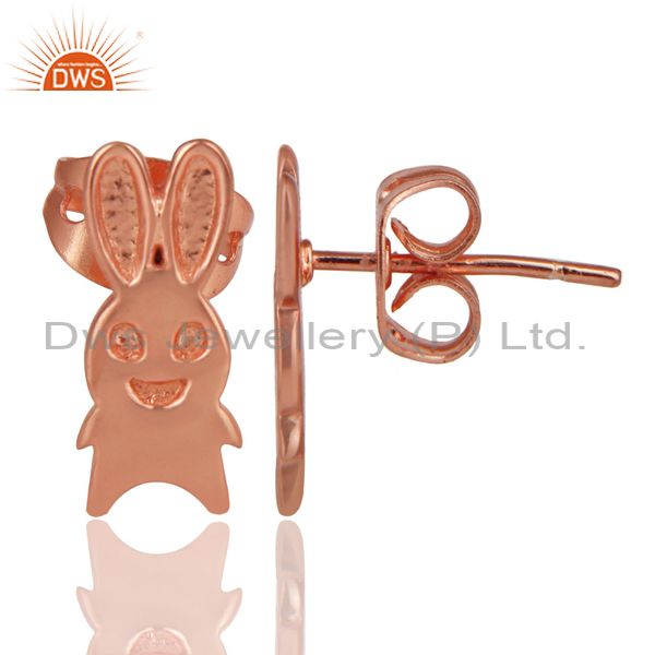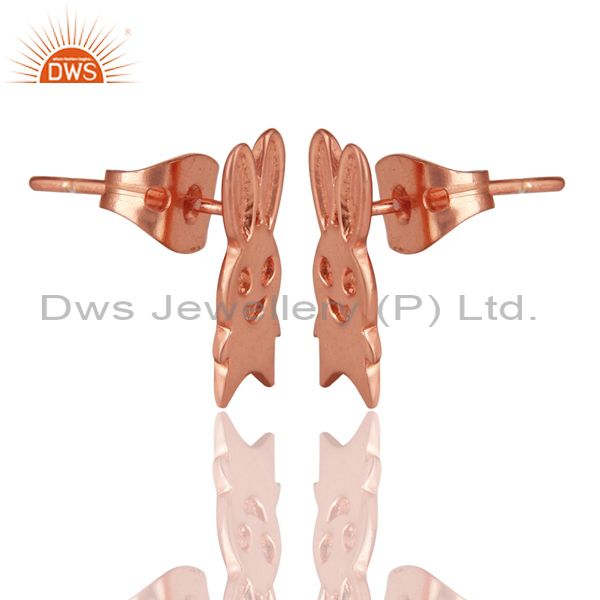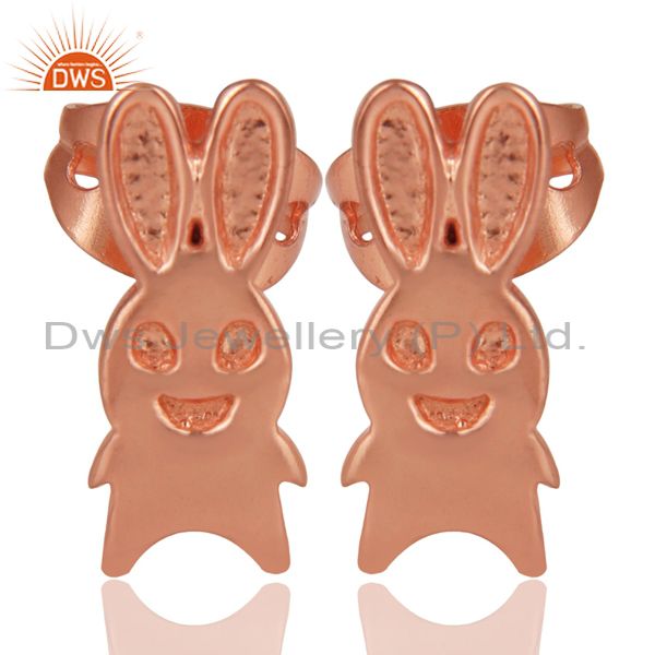 14K Rose Gold Plated Sterling Silver Handmade Art Rabbit Design Studs Earrings
