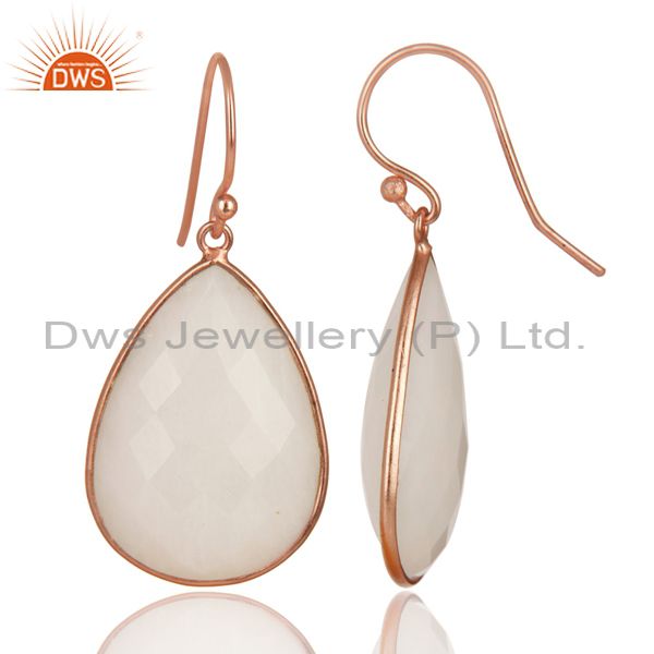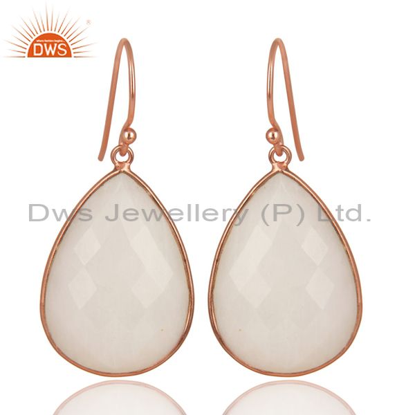 14K Rose Gold Plated Sterling Silver Handmade White Agate Bezel Drops Earrings