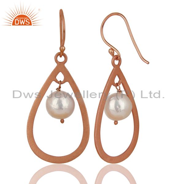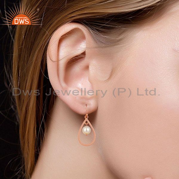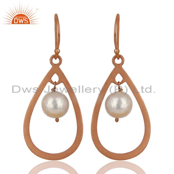 14K Rose Gold Plated Sterling Silver Pearl Beads Temple Design Drops Earrings