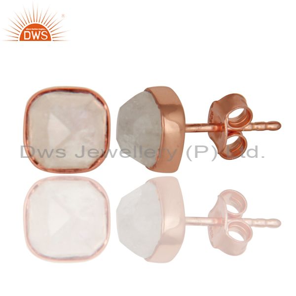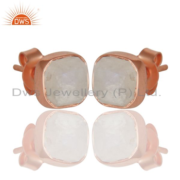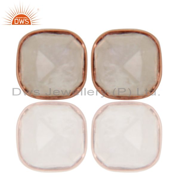 14K Rose Gold Plated Sterling Silver Rainbow Moonstone Womens Studs Earrings