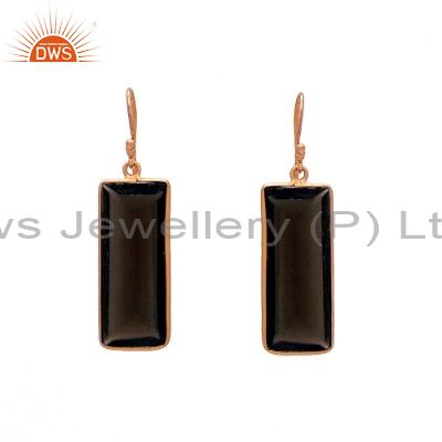 14K Rose Gold Plated Sterling Silver Smoky Quartz Bezel Set Dangle Earrings