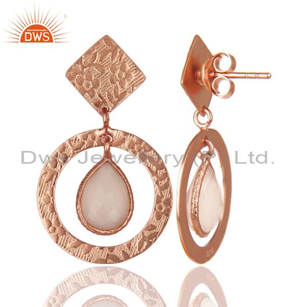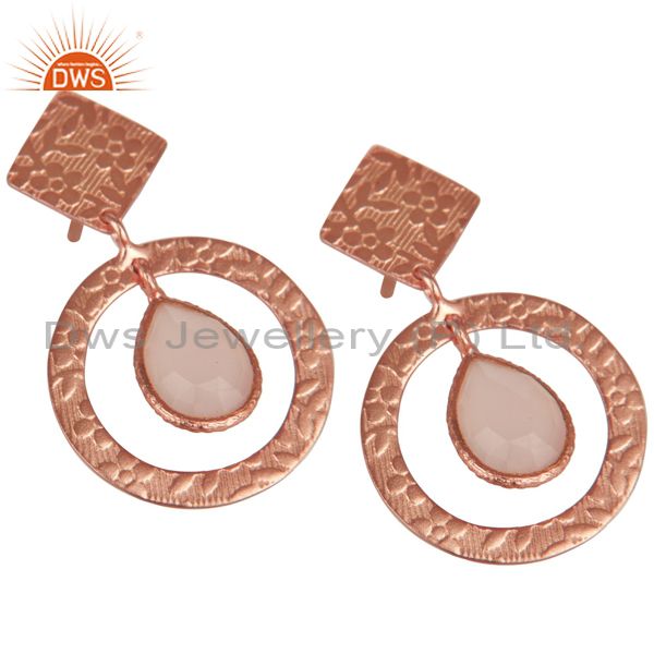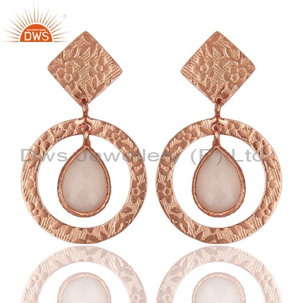 14K Rose Plated 925 Sterling Silver Dyed Chalcedony Bezel Set Drops Earrings