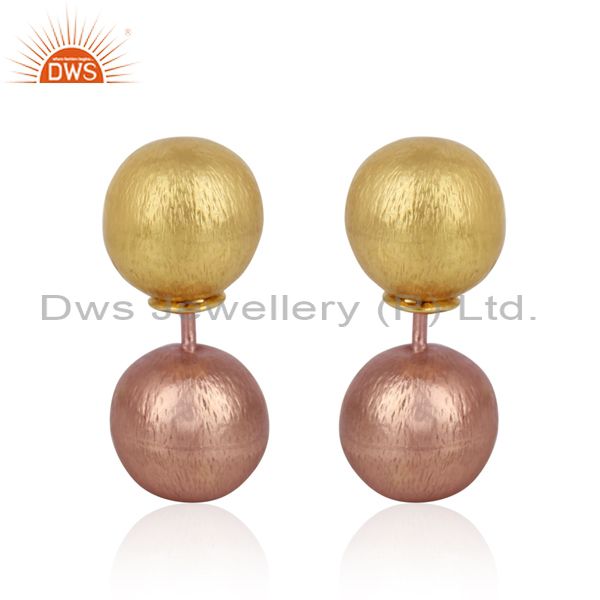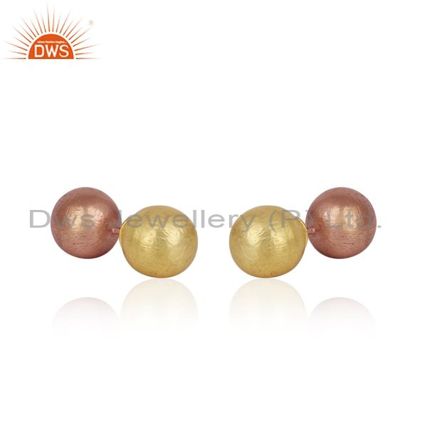 14K Yellow Gold & Rose Plated Handmade Ball Stylish Drops Brass Earrings