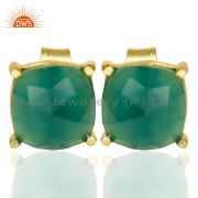 14K Yellow Gold Over Sterling Silver Natural Green Onyx Stud Earrings
