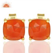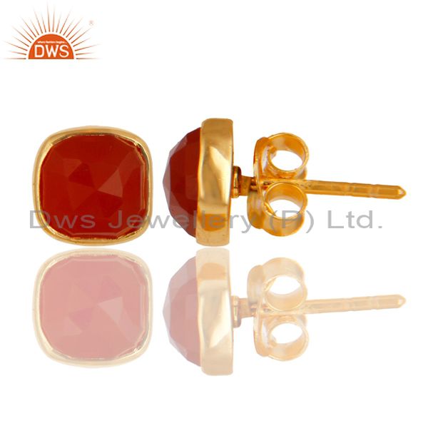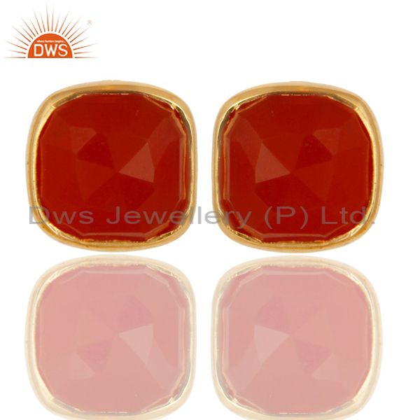 14K Yellow Gold Over Sterling Silver Natural Red Onyx Studs Earrings