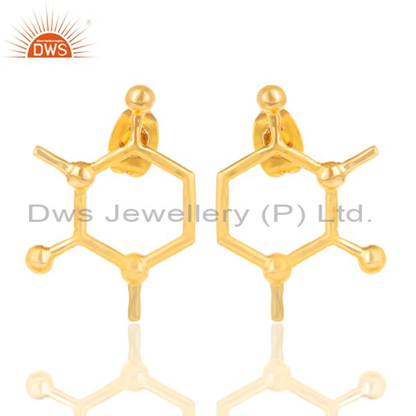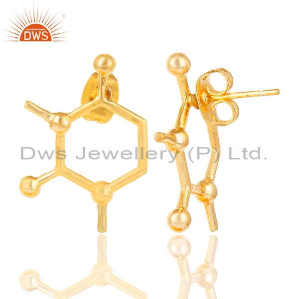 14K Yellow Gold Plated 925 Sterling Silver Art Deco Fashion Studs Earrings