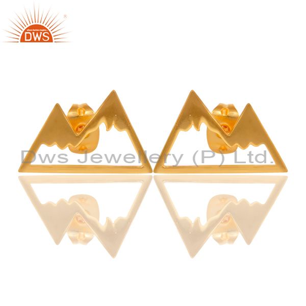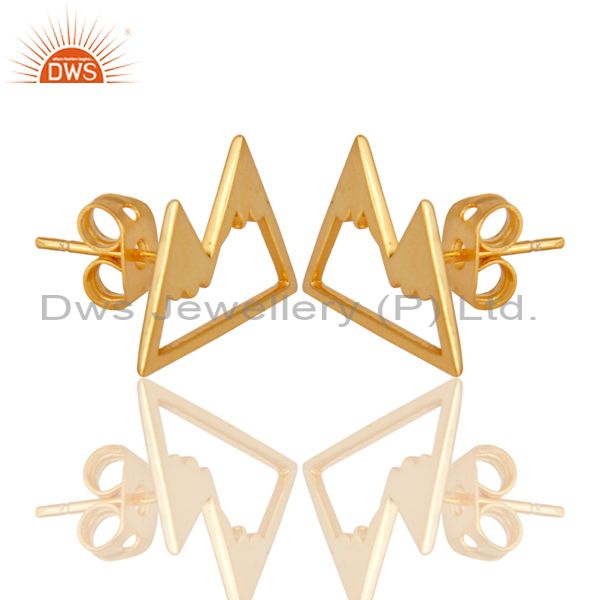 14K Yellow Gold Plated 925 Sterling Silver Art Deco Studs Earrings Jewelry