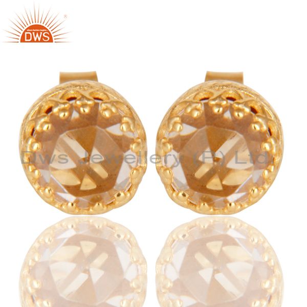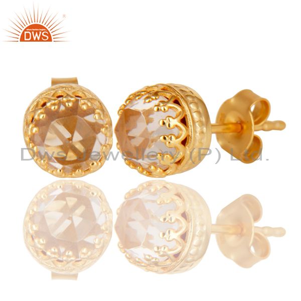 14K Yellow Gold Plated 925 Sterling Silver Crystal Quartz Stud Earrings Jewelry