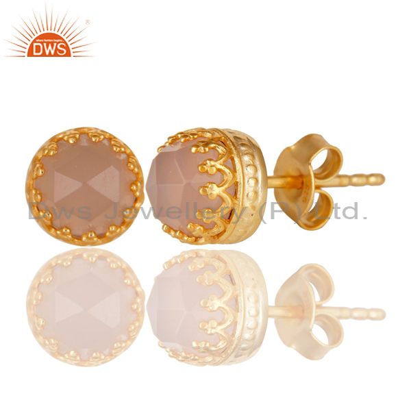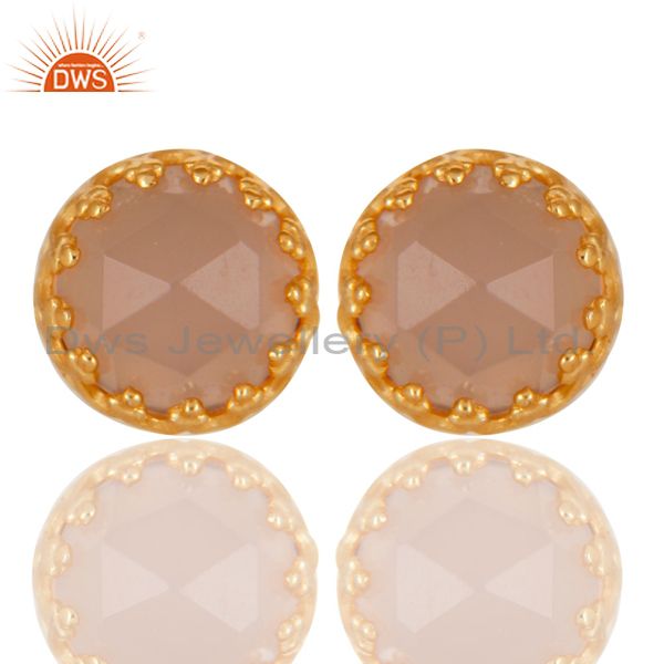 14K Yellow Gold Plated 925 Sterling Silver Dyed Rose Chalcedony Studs Earrings