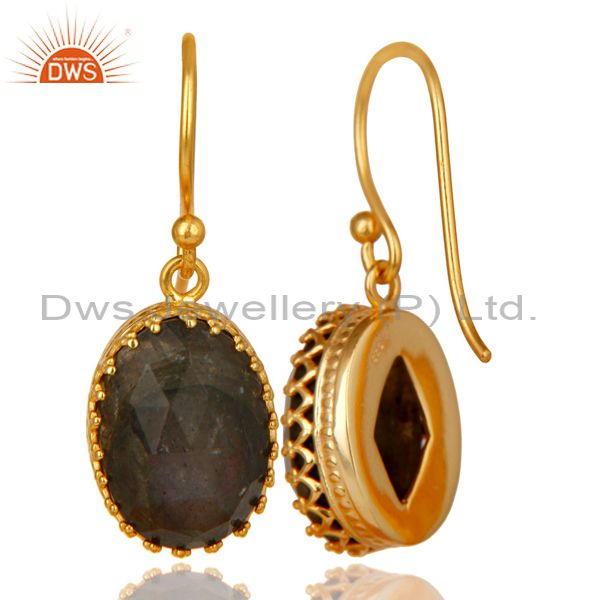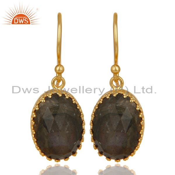 14K Yellow Gold Plated 925 Sterling Silver Faceted Labradorite Drops Earrings