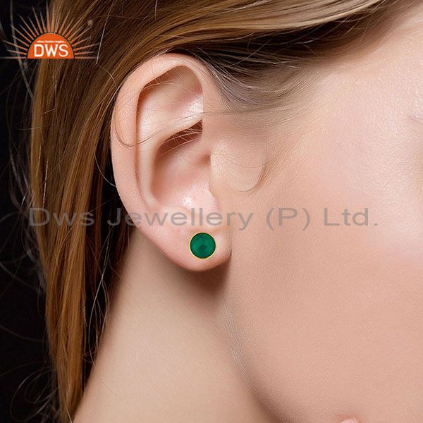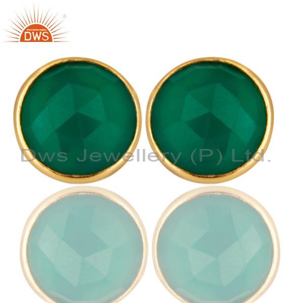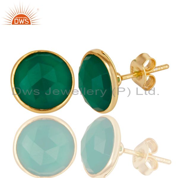 14K Yellow Gold Plated 925 Sterling Silver Green Onyx Gemstone Studs Earrings