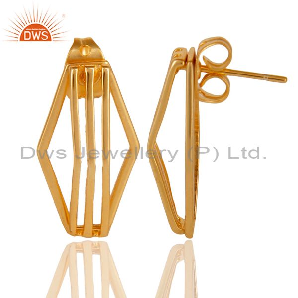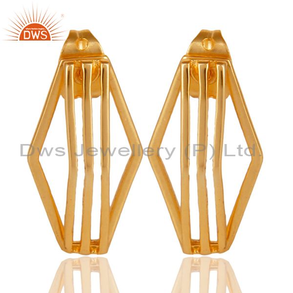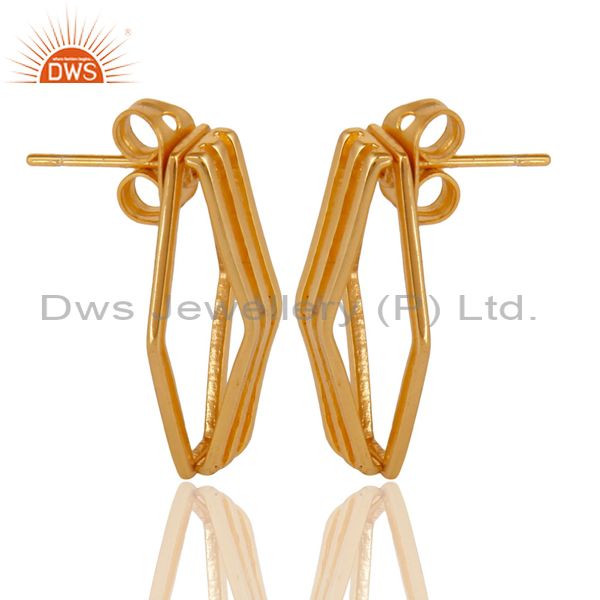 14K Yellow Gold Plated 925 Sterling Silver Handmade Flat Style Studs Earrings