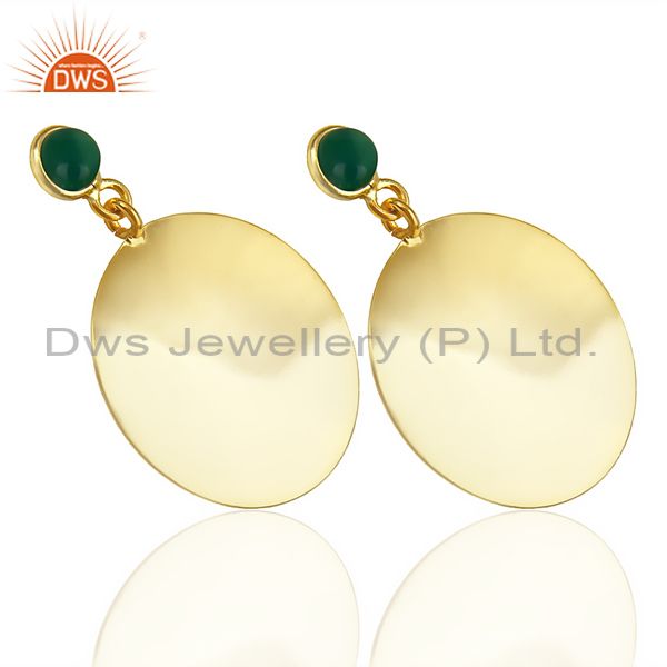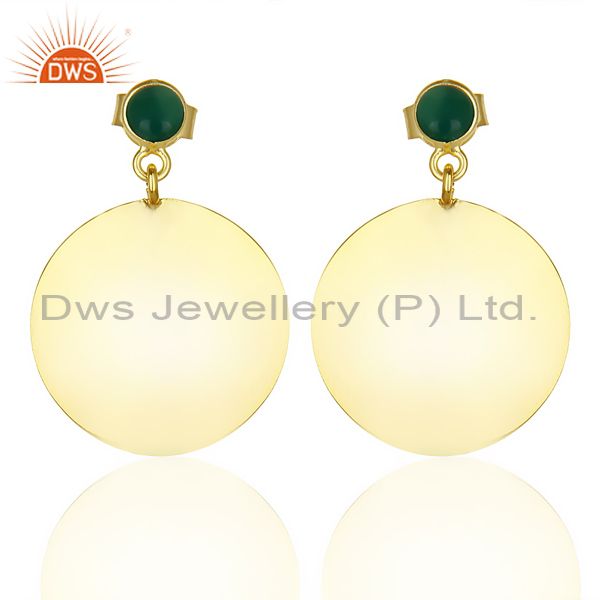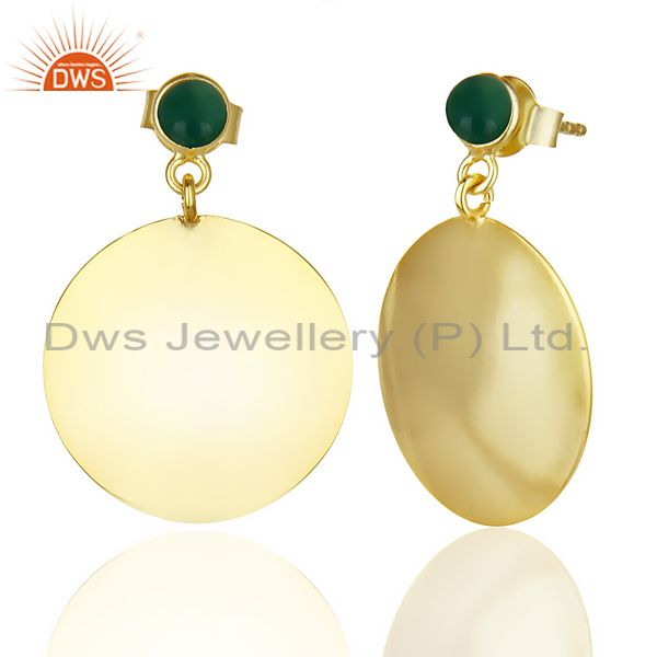 14K Yellow Gold Plated 925 Sterling Silver Handmade Green Onyx Dangle Earrings