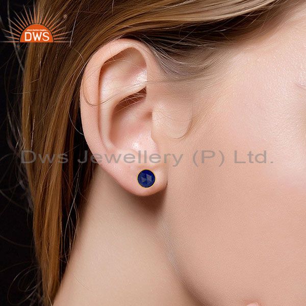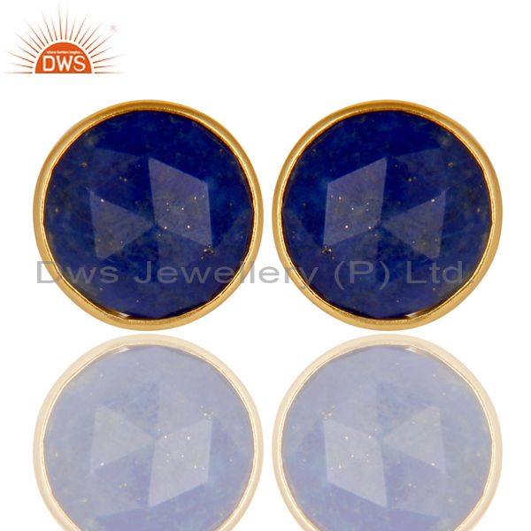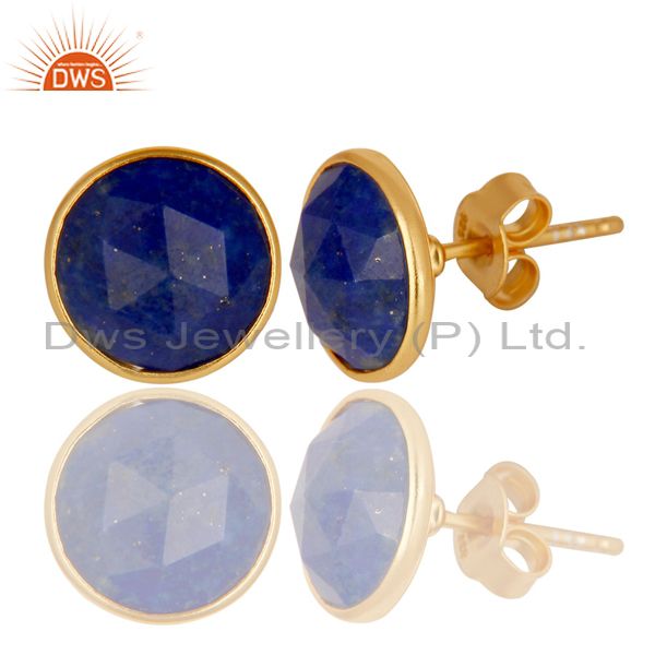 14K Yellow Gold Plated 925 Sterling Silver Handmade Lapis Lazuli Studs Earrings