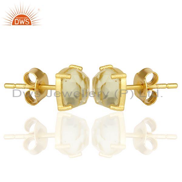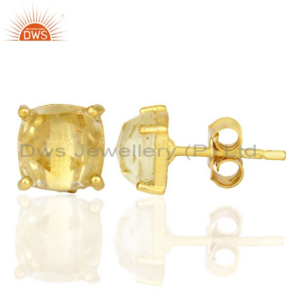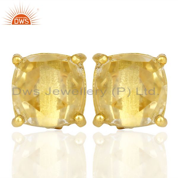14K Yellow Gold Plated 925 Sterling Silver Lemon Topaz Stud Earring Jewelry