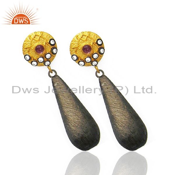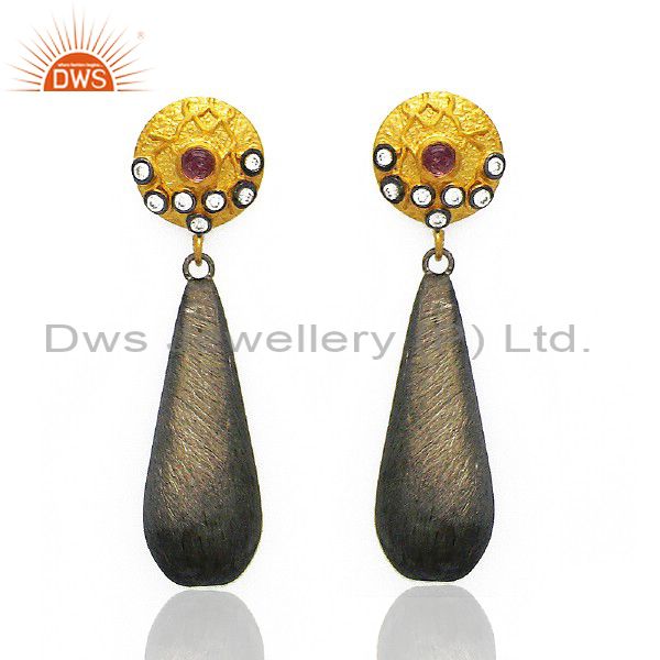 14K Yellow Gold Plated And Oxidized Sterling Silver White Zircon Dangle Earrings