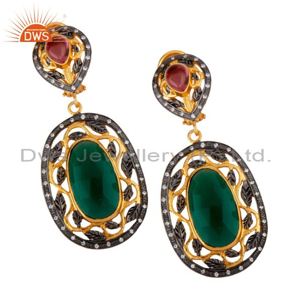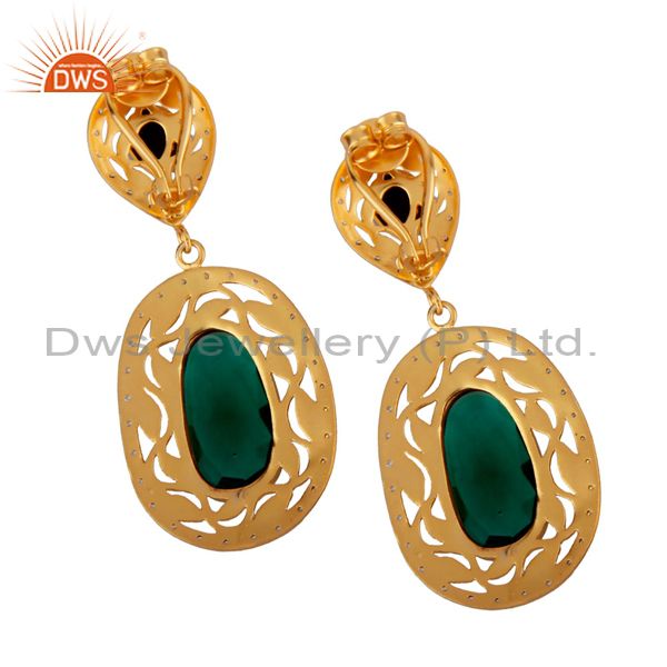 14K Yellow Gold Plated Brass Hydro Green And Cz Designer Dangle Earrings