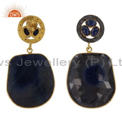 14K Yellow Gold Plated Brass Turquoise Bezel Set Fashion Drop Earrings With Cz