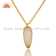 14K Yellow Gold Plated Brass White Moonstone Post Stud Earrings