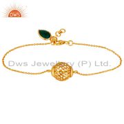 14K Yellow Gold Plated Green Onyx Sterling Silver Drop Earrings