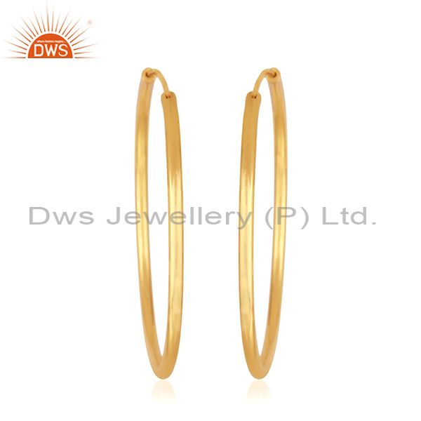 14k Yellow Gold Plated Handmade Brass Fashion Simple Hoop Earrings Manufacturer