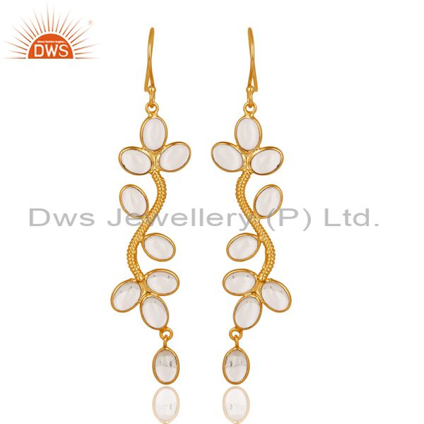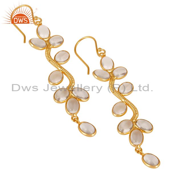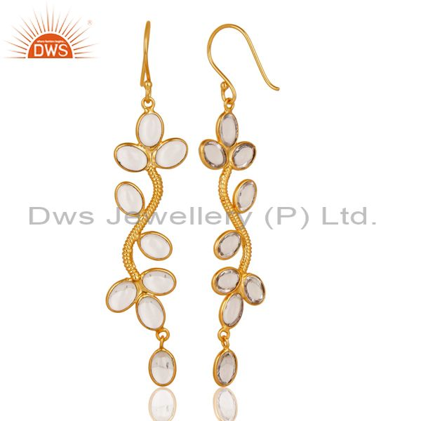14K Yellow Gold Plated Handmade Crystal Quartz Bezel Set Dangle Brass Earrings