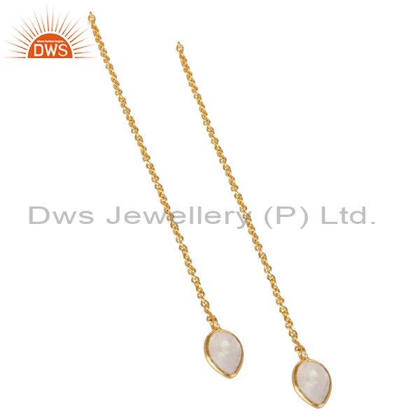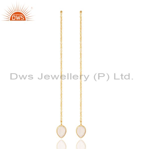 14K Yellow Gold Plated Handmade Rainbow Moonstone Link Chain Brass Earrings