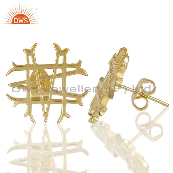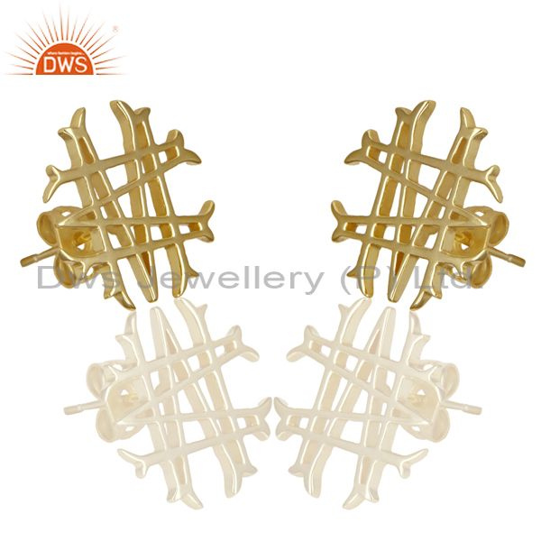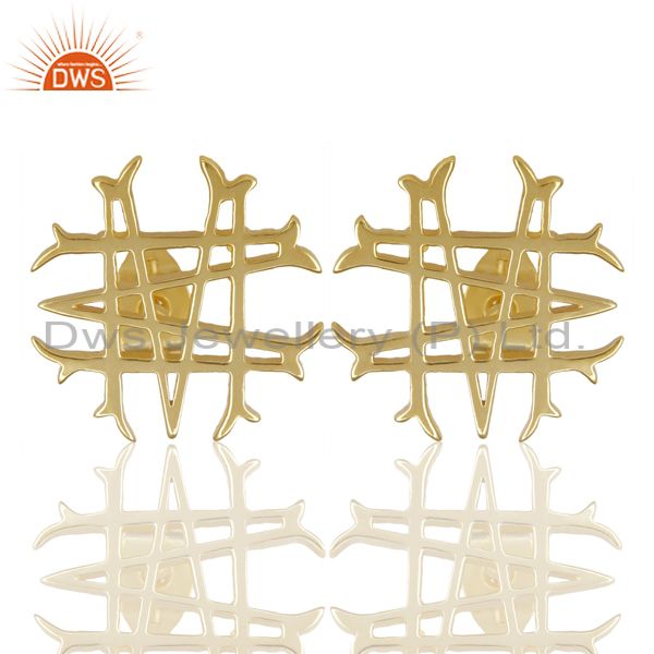 14K Yellow Gold Plated Handmade Zig Zag Design Studs Earring Gift Jewelry
