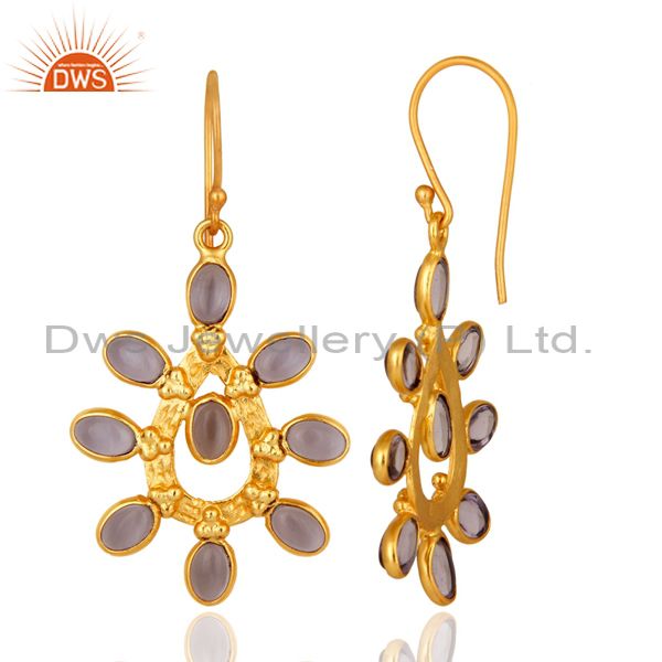 14K Yellow Gold Plated Hydro Amethyst Gemstone Handmade Earrings