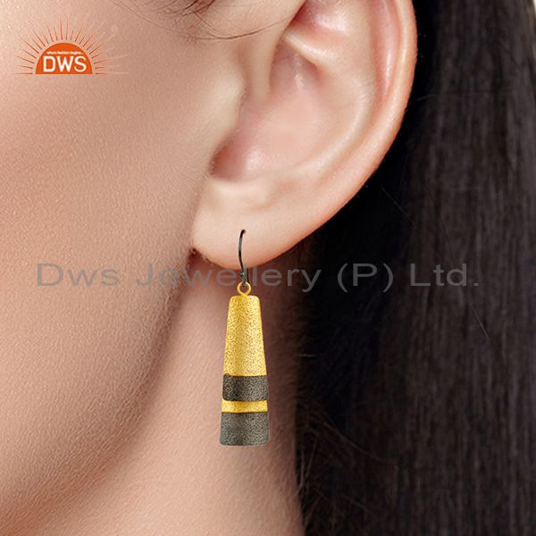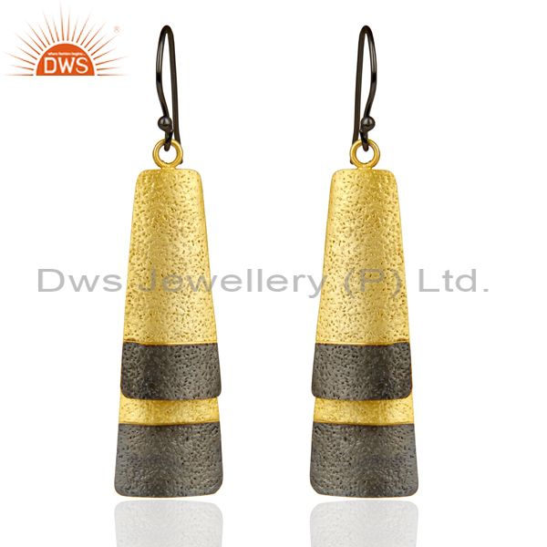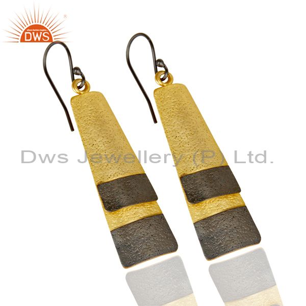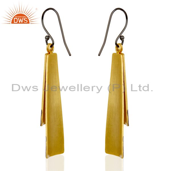 14K Yellow Gold Plated Oxidized Handmade Textured Dangle Designer Brass Earring
