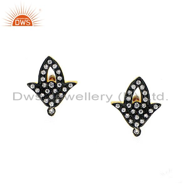 14K Yellow Gold Plated Sterling Silver Cubic Zirconia Designer Stud Earrings