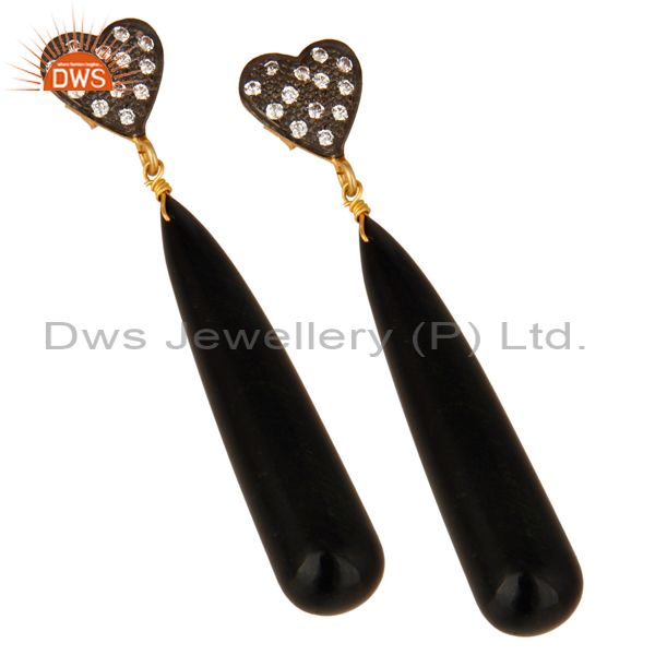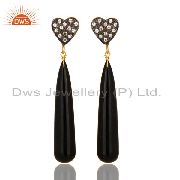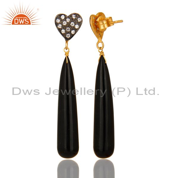 14K Yellow Gold Plated Sterling Silver Cz & Black Onyx Smooth Teardrop Earrings