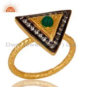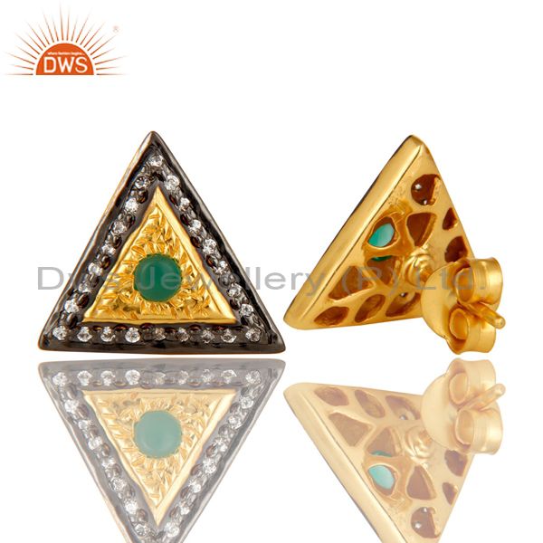 14K Yellow Gold Plated Sterling Silver Green Onyx And CZ Stud Earrings For Her