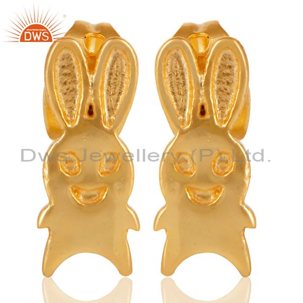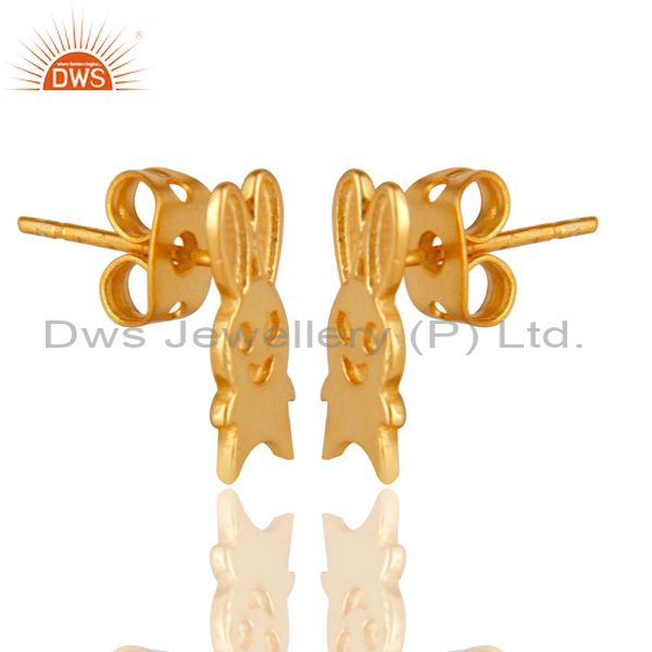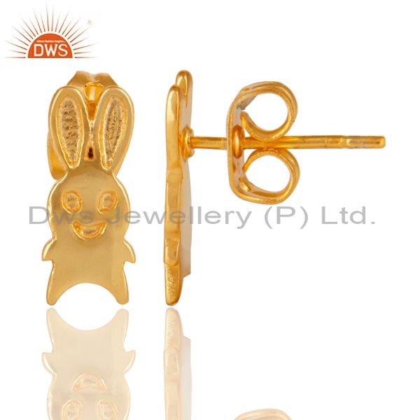 14K Yellow Gold Plated Sterling Silver Handmade Art Rabbit Design Studs Earrings