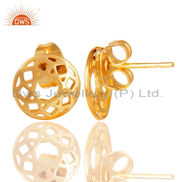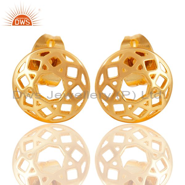 14K Yellow Gold Plated Sterling Silver Handmade Art Round Design Studs Earrings