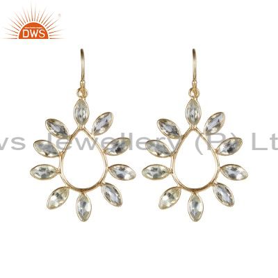 14K Yellow Gold Plated Sterling Silver Lemon Topaz Gemstone Dangle Earrings