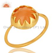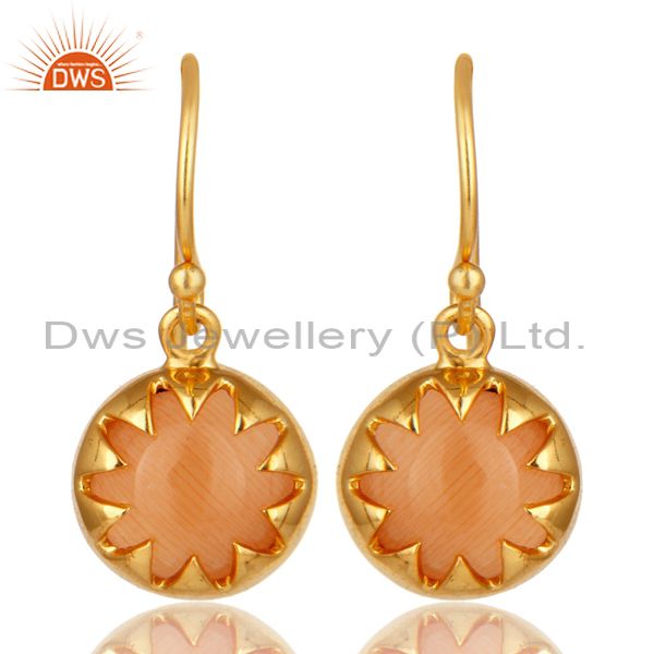 14K Yellow Gold Plated Sterling Silver Peach Moonstone Designer Drop Earrings
