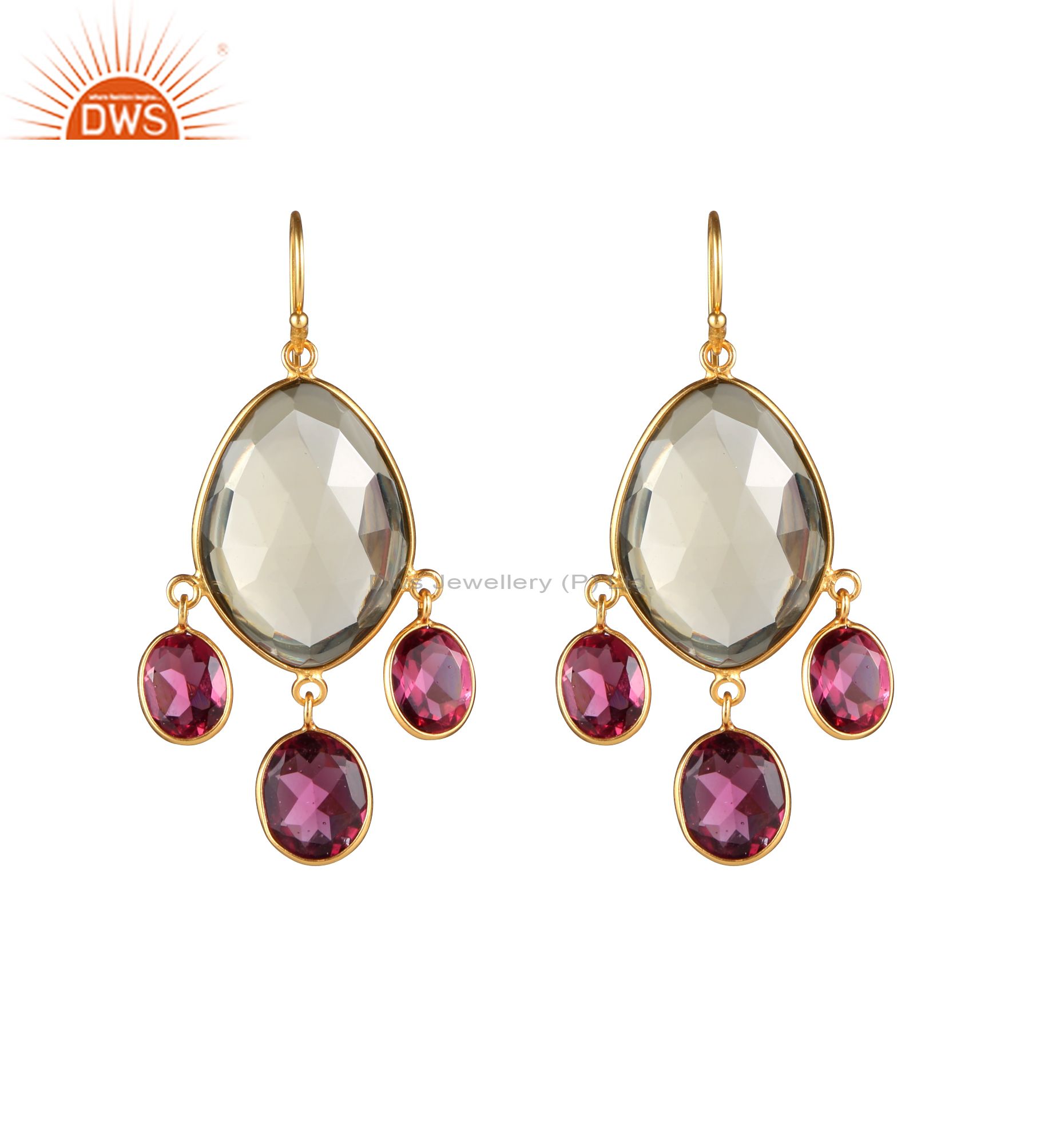 14K Yellow Gold Plated Sterling Silver Pink Corundum And Lemon Topaz Earrings