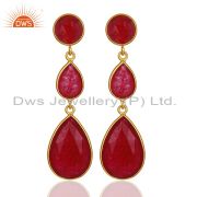 14K Yellow Gold Plated Sterling Silver Red Aventurine Bezel Set Drop Earrings