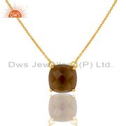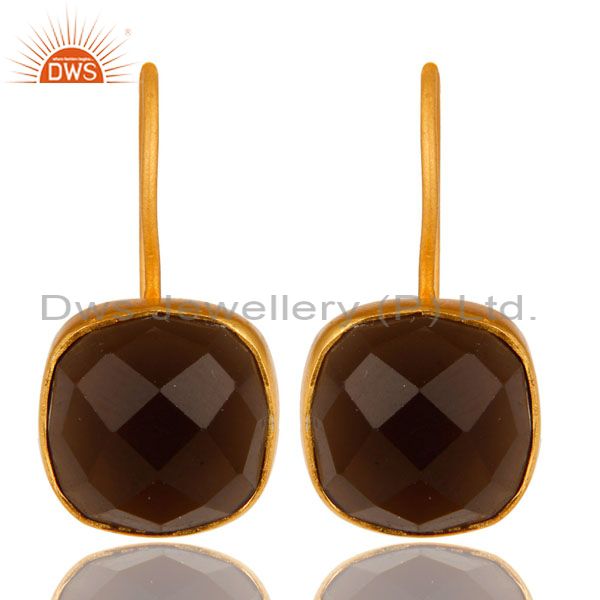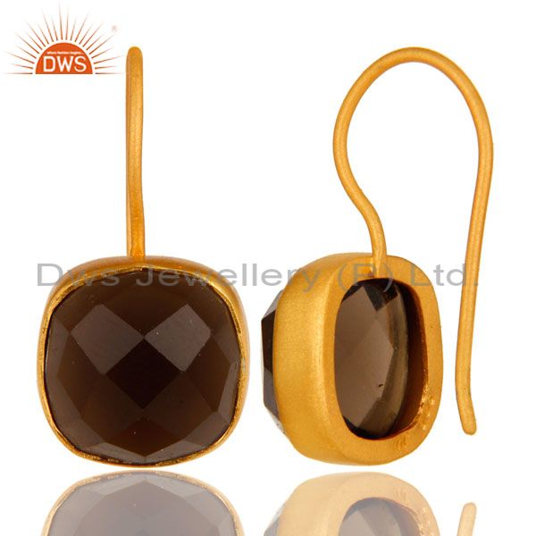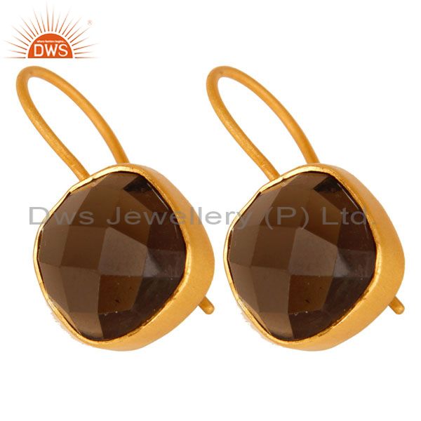14K Yellow Gold Plated Sterling Silver Smoky Quartz Gemstone Dangle Earrings
