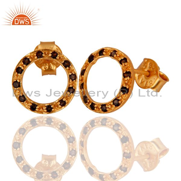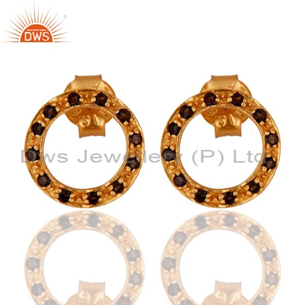 14K Yellow Gold Plated Sterling Silver Smoky Quartz Open Circle Stud Earrings
