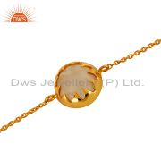 14K Yellow Gold Plated Sterling Silver White Moonstone Designer Drop Earrings