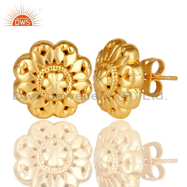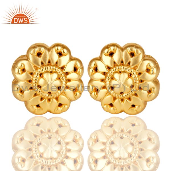14K Yellow Gold Plated Traditional Handmade Art Studs Brass Earrings Jewelry