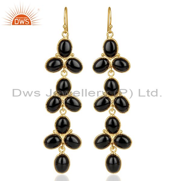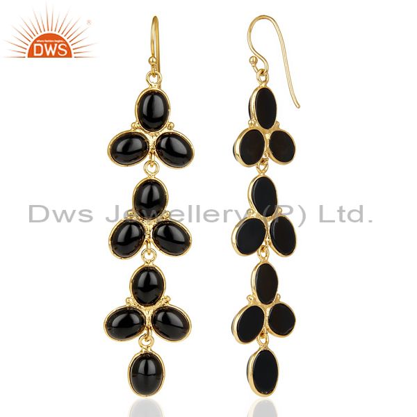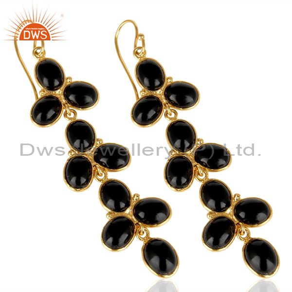 14K Yellow Gold Plated Traditional Handmade Natural Black Onyx Dangle Earrings