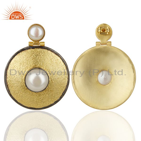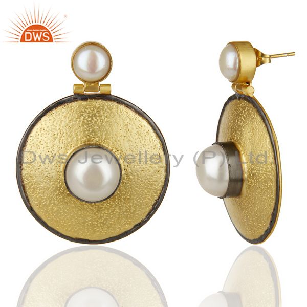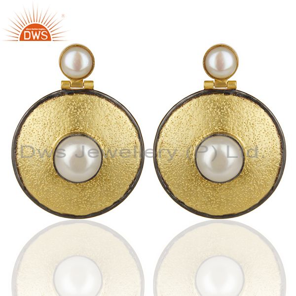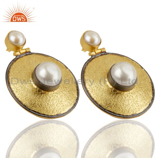 14K Yellow Gold Plated Traditional Handmade Pearl Drops Earrings Gift Jewelry